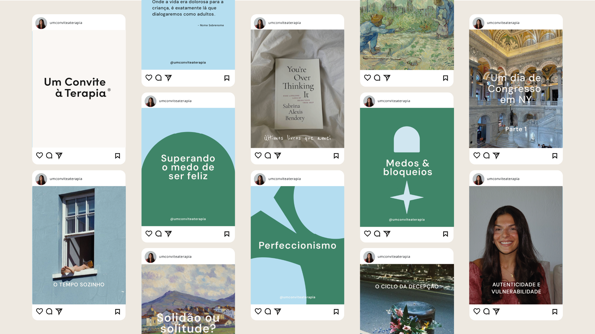 A marca da clínica comunica seriedade, acolhimento e base técnica, o Instagram se estabelece como um território mais livre. Um espaço de troca, reflexão e aproximação com o cotidiano.